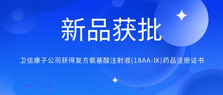 新品獲批 衛(wèi)信康子公司獲得復方氨基酸注射液(18AA-Ⅸ)《藥品注冊證書》